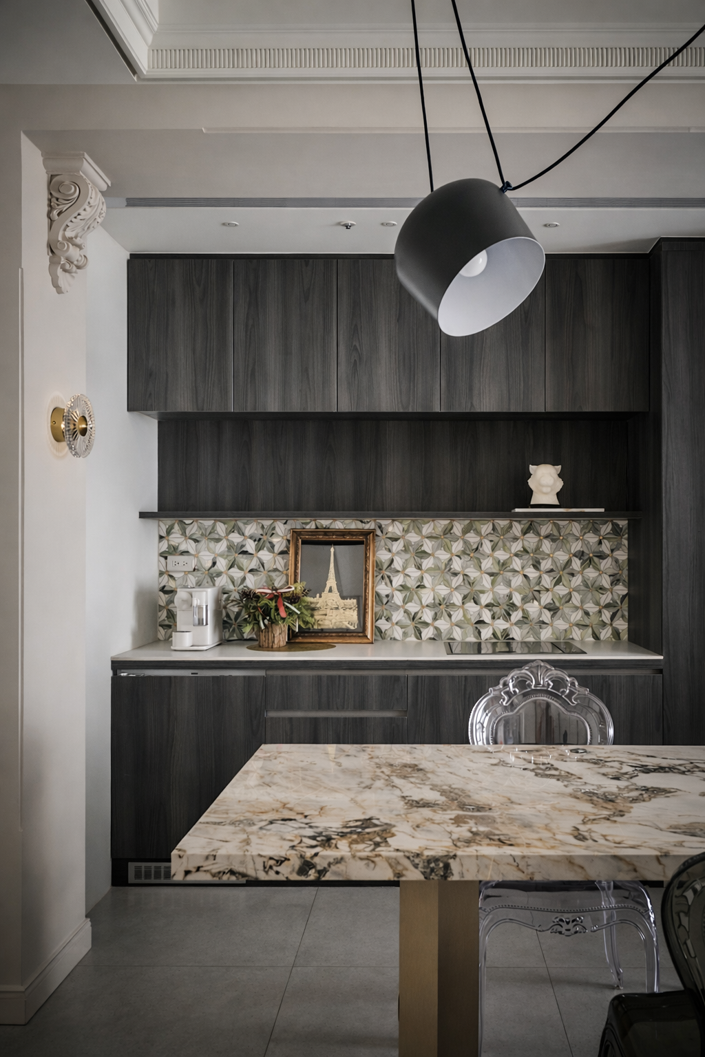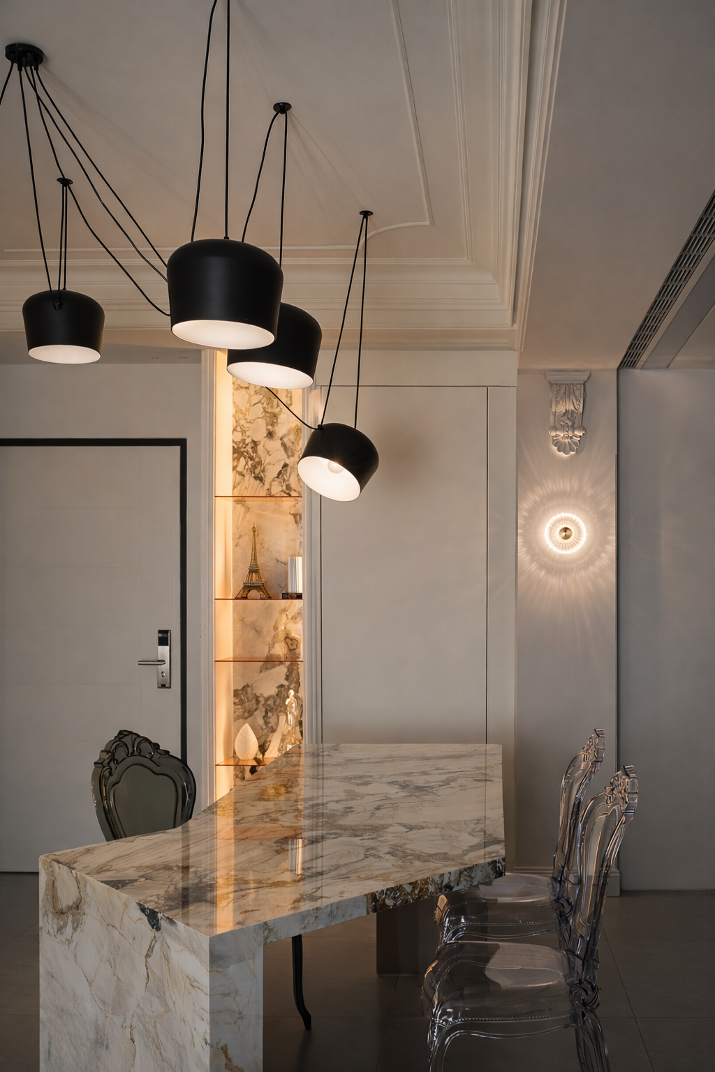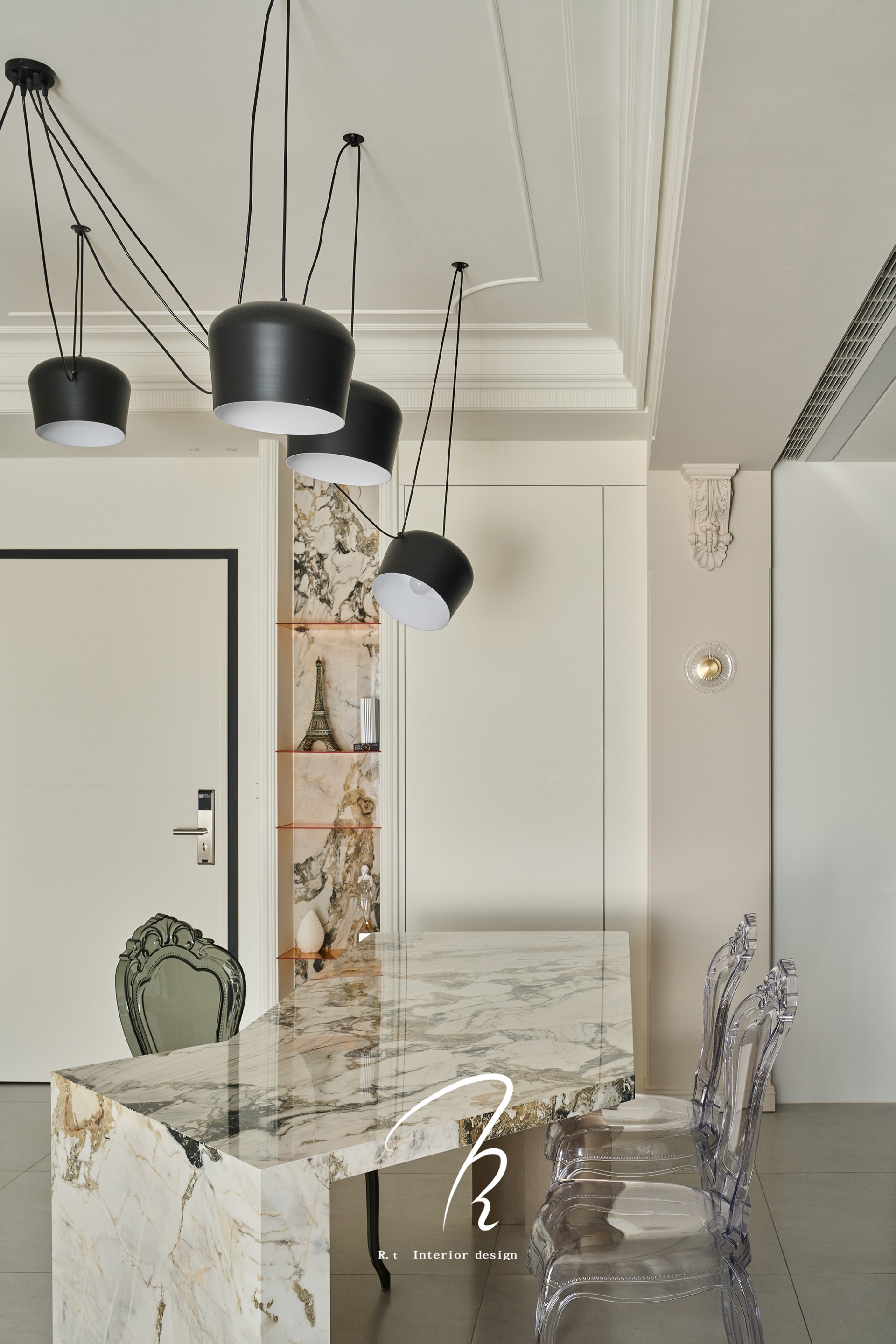 為設計起點,將其「簡潔線條詮釋傳統形體,簡約與奢華結合」的理念作為整體空間的核心精神。透過現代設計手法演繹經典美學,傳統的厚重與現代的輕盈在對話中激盪出全新火花。